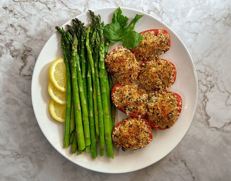 Roasted Asparagus with Stuffed Tomatoes Provencal