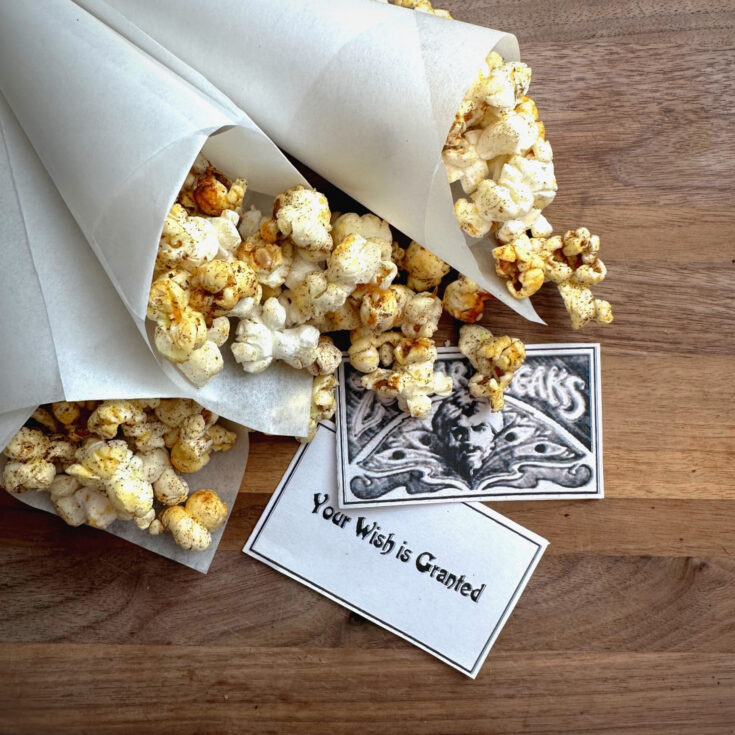 When the popping has slowed to once every 2 to 3 seconds, uncover the pot and remove from the heat. Ideally you'll have a slightly sticky and sweet batch of lovely kettle corn.