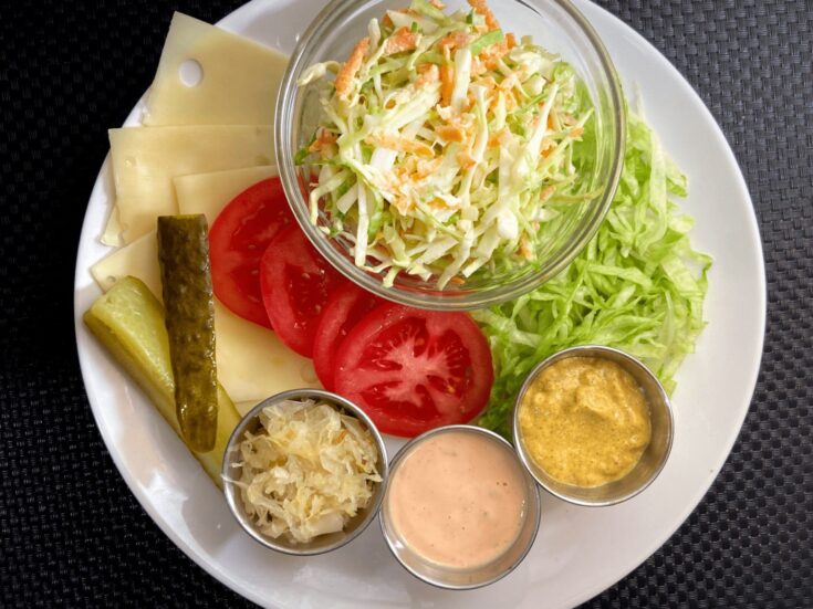 I started ordering this as a child on every plane ride after seeing When Harry Met Sally, and I'm relatively certain none of the flight attendants got the reference. But since I've been able to add vodka to the mix I haven't cared quite as much. If you want to be super authentic, most airlines use Mr & Mrs T Bloody Mary Mix, but adding the spices listed in my Notes section gets you close to where you want to be. OK, here's what you want, in two cups. Regular tomato juice, filled up about three quarters, than add a splash of Bloody Mary mix, just a splash, and a little piece of lime, but on the side. The vodka is optional, but highly recommended. If you have a plethora of spices and don't feel like ordering an entire bottle of Bloody Mary Mix, you can add a pinch each of black pepper, cayenne, celery salt, paprika, onion powder, and a small dash each of hot sauce, Worcestershire, and horseradish. Yes, Katz's pastrami in NYC usually gets all the attention when you are fortunate enough to eat there. But we all know THE scene from When Harry Met Sally when Sally shows Harry, very audibly, how good of an actress she is-- and she is most definitely eating (and disassembling, as is her way) a delicious deli turkey sandwich. Farther down we get to Harry's order, but (like Estelle Reiner), I'll have what she's having. Har har. Note, Katz slow roasts their turkey in a "bag" or tightly wrapped tent of aluminum foil so that the meat remains moist and succulent as it cooks in its own juices. I've attempted to replicate that strategy here, and IT WORKED. Preheat your oven to 325, and mix your herbs/spices in a small bowl. Next, place two long sheets of aluminum foil onto a baking sheet, one running horizontal, the other vertical-- this will form your baking "tent". Butter the surface of aluminum foil, and set a small rack in the center. Remove your turkey from the bag and pat dry with paper towels. Place onto your baking rack, and spread with remaining butter. Sprinkle all over with herb/spice mix, including inside the cavity. Bring the top layer up around the rack/turkey breast to form a loose tent. Then, bring up the remaining sides. If you need to, use an additional piece of aluminum foil on the top of your tent to cover any holes. Pierce a small hole through the aluminum foil using a digital meat thermometer (if you have one) and push halfway through the deepest part of the breast-- be sure to stay away from the bone running down the middle. Place in the oven on the lowest middle rack and bake, until temperature reaches 165. Remove from oven and allow to sit, tent opened, for 10-15 mins. To slice, cut vertically along the breast bone... ...and then at a perpindicular angle along the bottom side of the breast to remove the meat. Slice at an angle, somewhere between 1/4 and 1/3 of an inch slices. Your turkey should be SUPER juicy and succulent. To assemble your sandwich(es), place about 3/4 of a lb of turkey (don't waste any bits, you can add thinner shreds too!) onto a slice of white bread, and top with whatever you'd like from the deli sides menu. Just take your time, no one likes to finish too quickly... While there might have been too much pepper in Harry's paprikash, this Katz-esque pastrami on rye should have just the right amount of spice. And if you read this recipe and think HEY, THAT'S NOT REAL PASTRAMI, SHE CHEATED-- to that I can only say, you're right, you're right, I know you're right. But it's still damn good. To preface-- pastrami is typically made from the beef belly, but is also sometimes made from brisket... as is corned beef! And since both cuts are brined in essentially the same way prior to cooking, you can use a corned beef brisket without going through the hassle of slow brining beef for pastrami for five days. The next big difference between corned beef and pastrami is the seasoning/cooking method-- and I've taken care of that below! Remove your beef brisket from the packaging and pat dry with paper towels. Ideally, you should see some generous marbelling throughout the meat-- these are the threads of fat that will make your "pastrami" moist as it cooks. Fill the bottom of your Instapot/pressure cooker with a cup of water, and set the rack inside. Place the brisket on top of the rack, fat cap side up so that the fat melts into the meat. Cook on high pressure, about 50 minutes. All a natural release of about 15 more minutes before you release the pressure valve and remove the meat from the cooker. At this point it should be fork tender. Place your beef onto a sheet of aluminum foil and generously coat with your spice mixture (pepper down to mustard powder in the ingredients list). If you have some leftover, that's ok. You just want the surface of the meat to be completely covered. Wrap tightly in foil and refrigerate for at least 6 hours and up to 2 days. Remove your pastrami package from the fridge and allow to come to room temperature (between 30 minutes to an hour). Preheat your oven to 275. Once the meat has warmed a bit, open the aluminum foil and place the opened package of beef into the oven-- bake for about 45 minutes to allow the exterior spices to form a crust. Remove from the oven and let sit for 10 minutes so that the pastrami juices have time to redistribute. When you're ready to eat, slice about 1/4 inch thick. Generously layer onto your rye bread. Top with whatever sides the Sally's in your life are too picky to try. Gulden's mustard is a go-to for Katz's aficionados. And maybe some crisp kraut-- after all, sometimes it is so nice when you can sit with someone and not have to talk while you're busy crunch crunch crunching away and thinking about how hieroglyphics are just an ancient comic strip about a character named Sphinxy. A plate full of "on the side" deli toppings/condiments/add ons perfect for the women who are high maintenance but think they're low maintenance. But really they just want it the way they want it. Tom-a-to, tom-ah-to. Scroll down for a gui